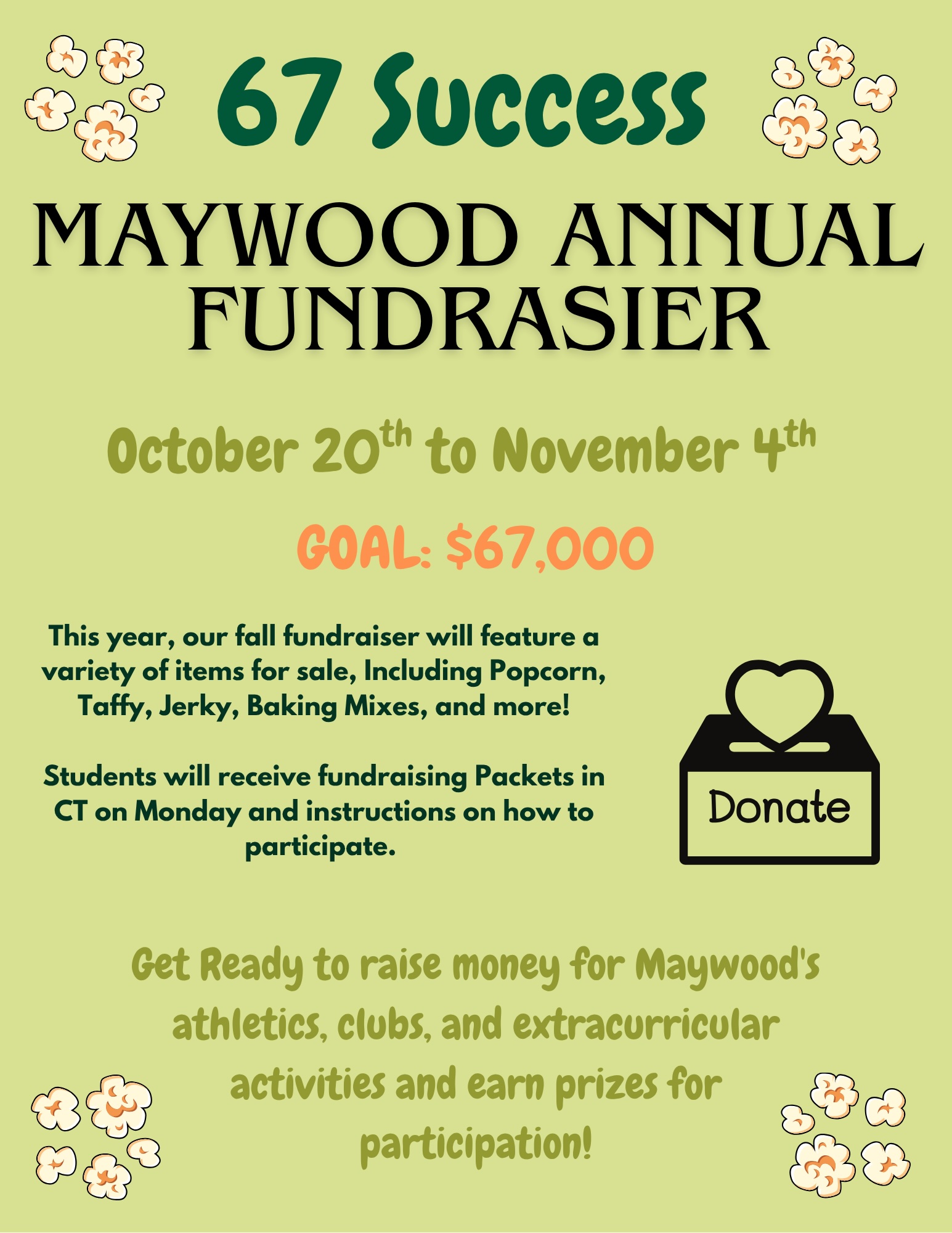The annual Maywood Middle School fundraiser kicks off Monday, October 20th. Students will receive fundraising packets and instructions during Charger Time. Proceeds directly support Maywood athletics, clubs, and extracurricular activities that enrich our students’ experiences. Thank you for helping strengthen the Maywood community by encouraging your students’ participation.